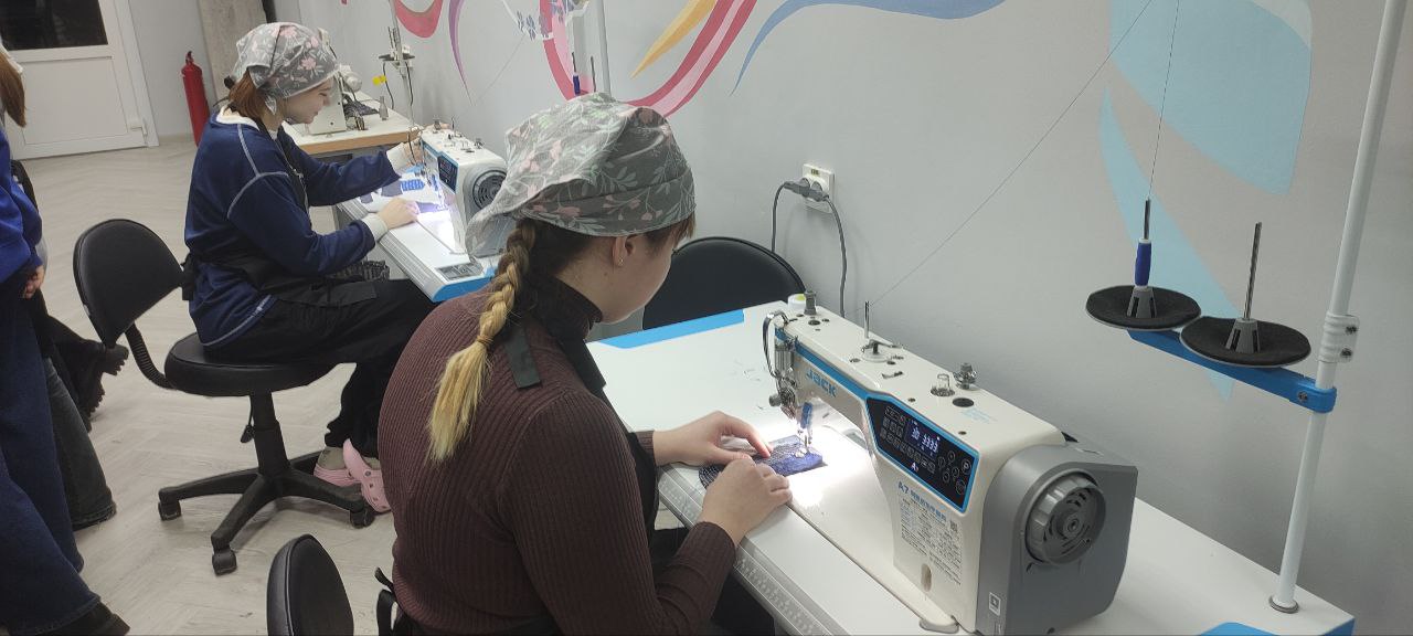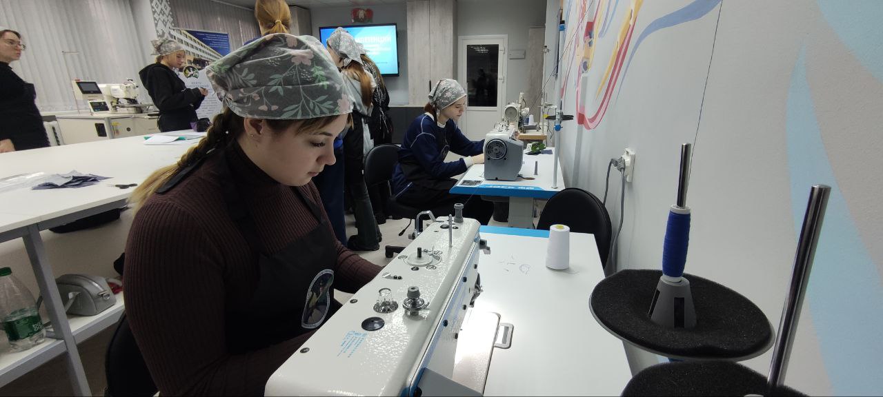В центре компетенций современного швейного оборудования проходят занятия в рамках производственного обучения. Сегодня учащиеся группы ШП-2 во главе с мастером производственного обучения Артюшенко Ксенией Александровной изучали тему «Обработка мелких деталей», используя в работе швейные машины