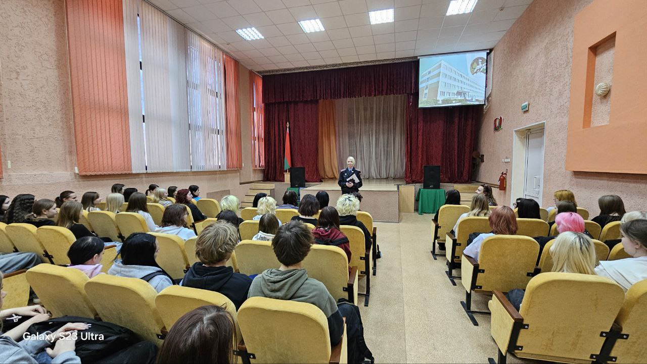 В учреждении образования «Гомельский государственный колледж бытового обслуживания» состоялась диалоговая площадка, направленная на профилактику правонарушений и повышение правовой грамотности учащихся. В качестве спикера перед учащимися выступила участковый инспектор инспекции по делам несовершеннолетних Железнодорожного РОВД Гомеля Д. Н. Михалевич.