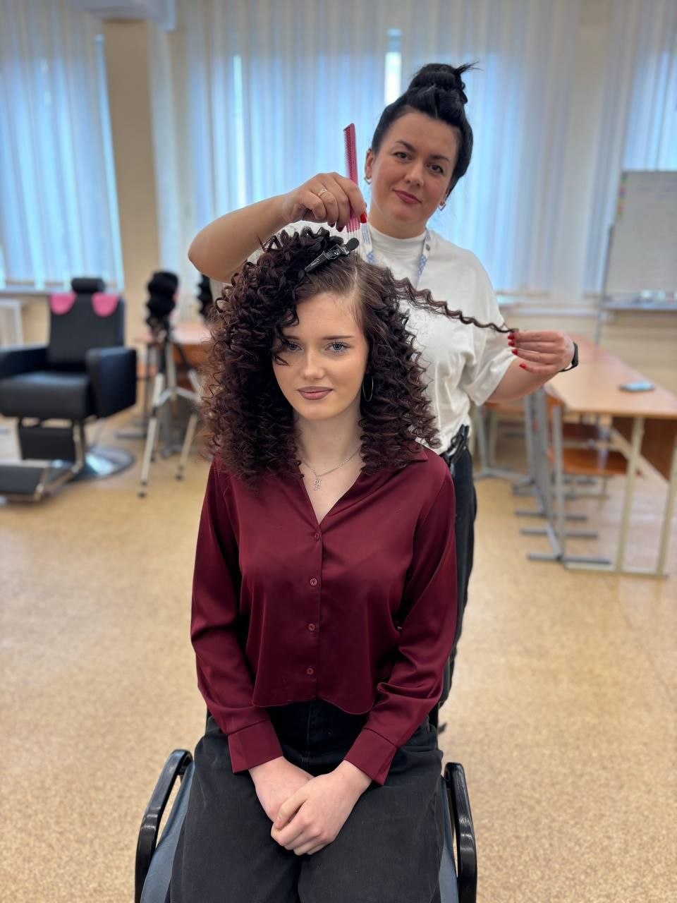 Провела занятие мастер производственного обучения И.Г. Зайцева. Она на практике продемонстрировала учащимся особенности ухода, техники укладки и корректной работы с вьющимися волосами. Участники узнали о профессиональных средствах и нюансах, которые отличают работу с такой текстурой волос.