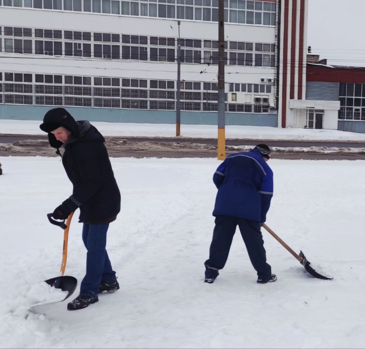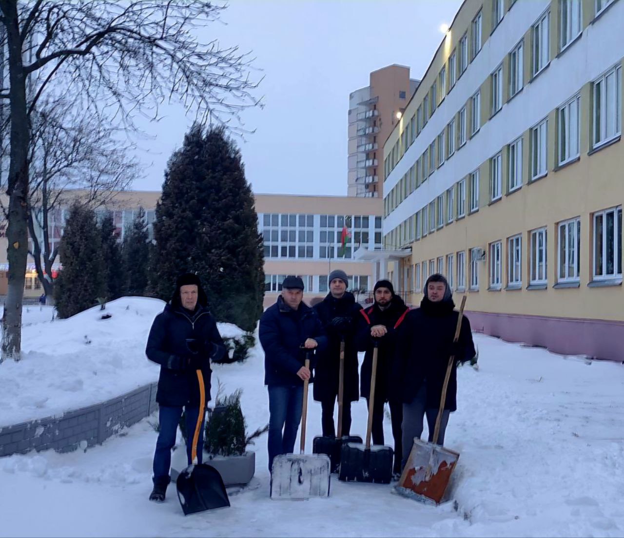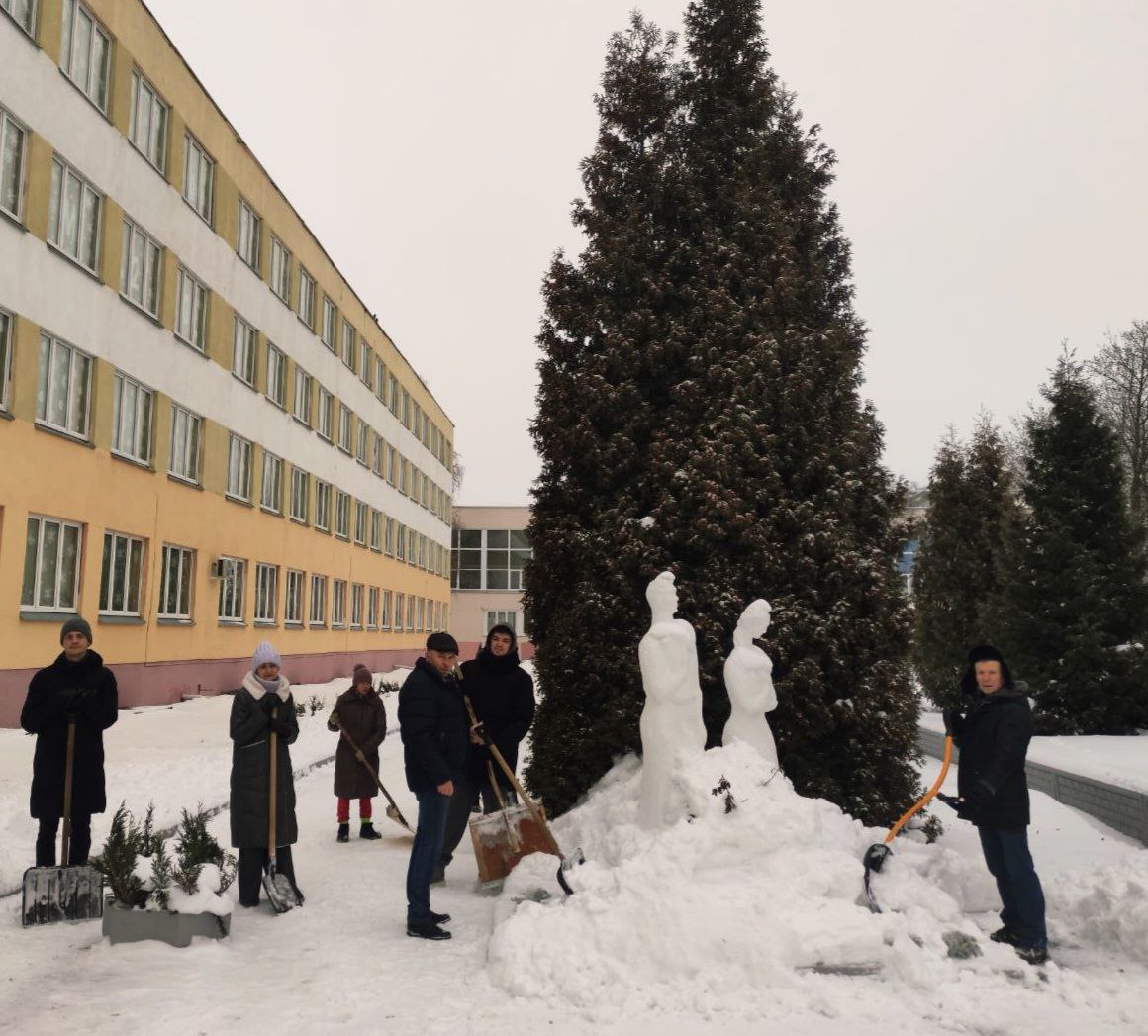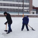 Преподаватели и сотрудники колледжа дружно взялись за лопаты, чтобы очистить от снежных заносов подходы к учебному корпусу и общежитию, а также прилегающие тротуары.