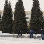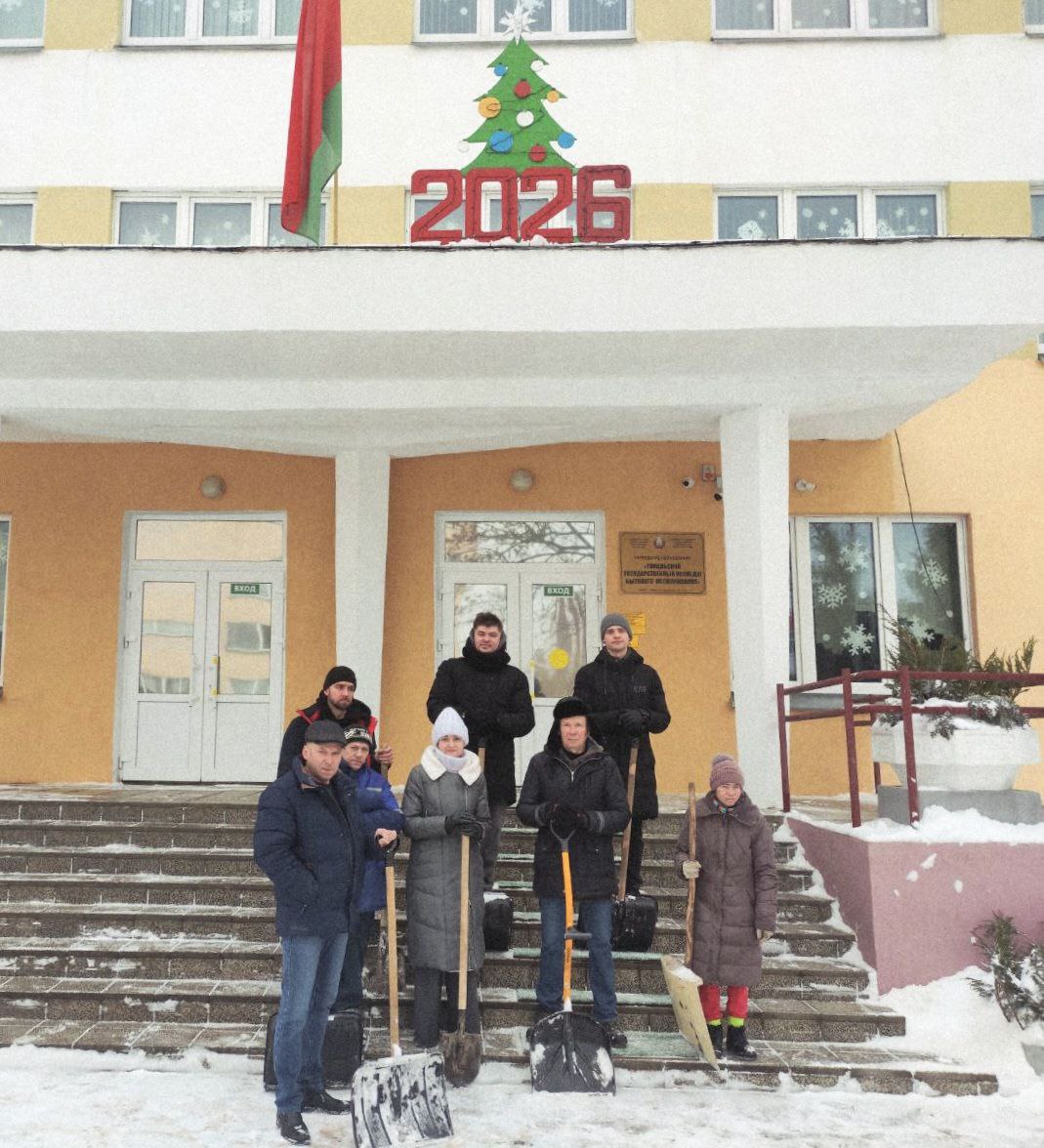 Трудовой коллектив колледжа бытового обслуживания вышел на расчистку снега
