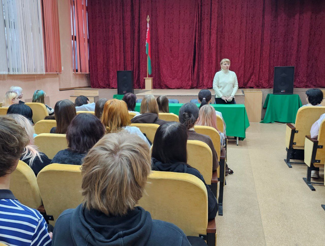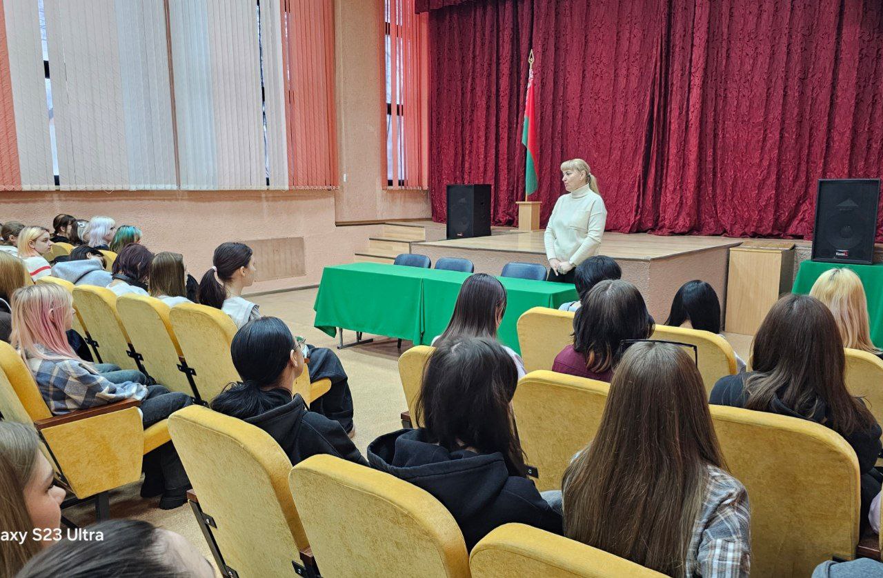 В Гомельском колледже бытового обслуживания состоялась профилактическая встреча учащихся с представителем системы здравоохранения. Перед учащимися выступила Елена Владимировна Палубец, заведующий детско-подростковым отделением диспансеризации и медицинской реабилитации Гомельского областного наркологического диспансера.