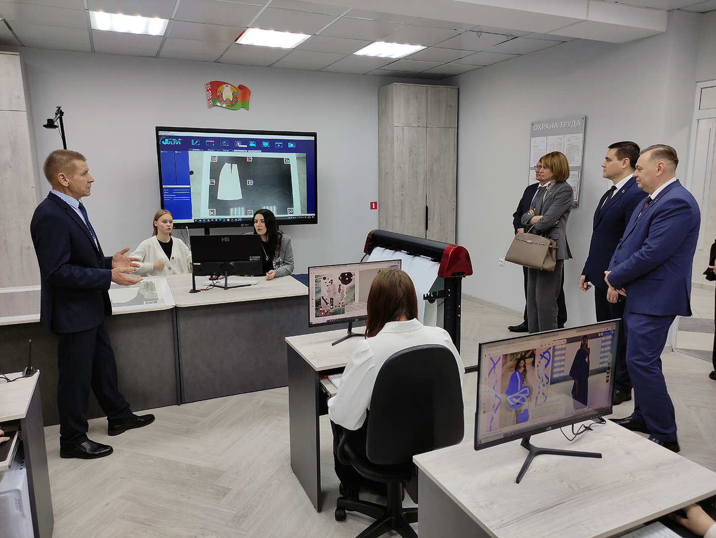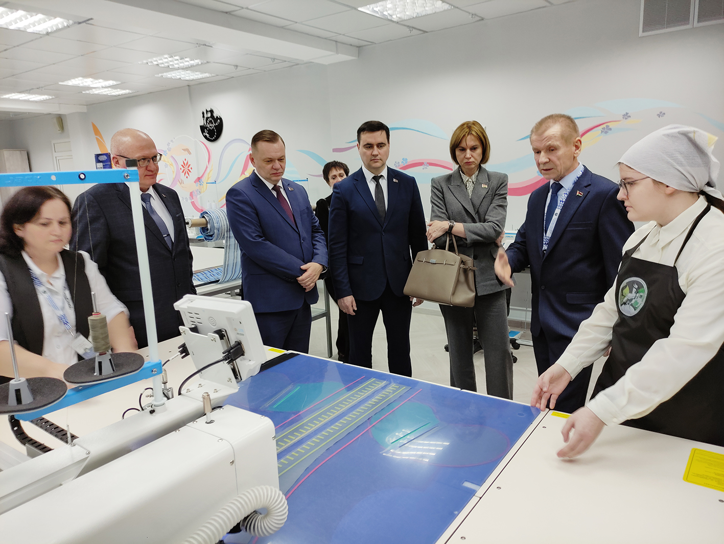 Центром внимания визита стал центр компетенций «Современные технологии швейного производства». Здесь гостям продемонстрировали высокотехнологичное оборудование и инновационные подходы в подготовке специалистов для легкой промышленности.